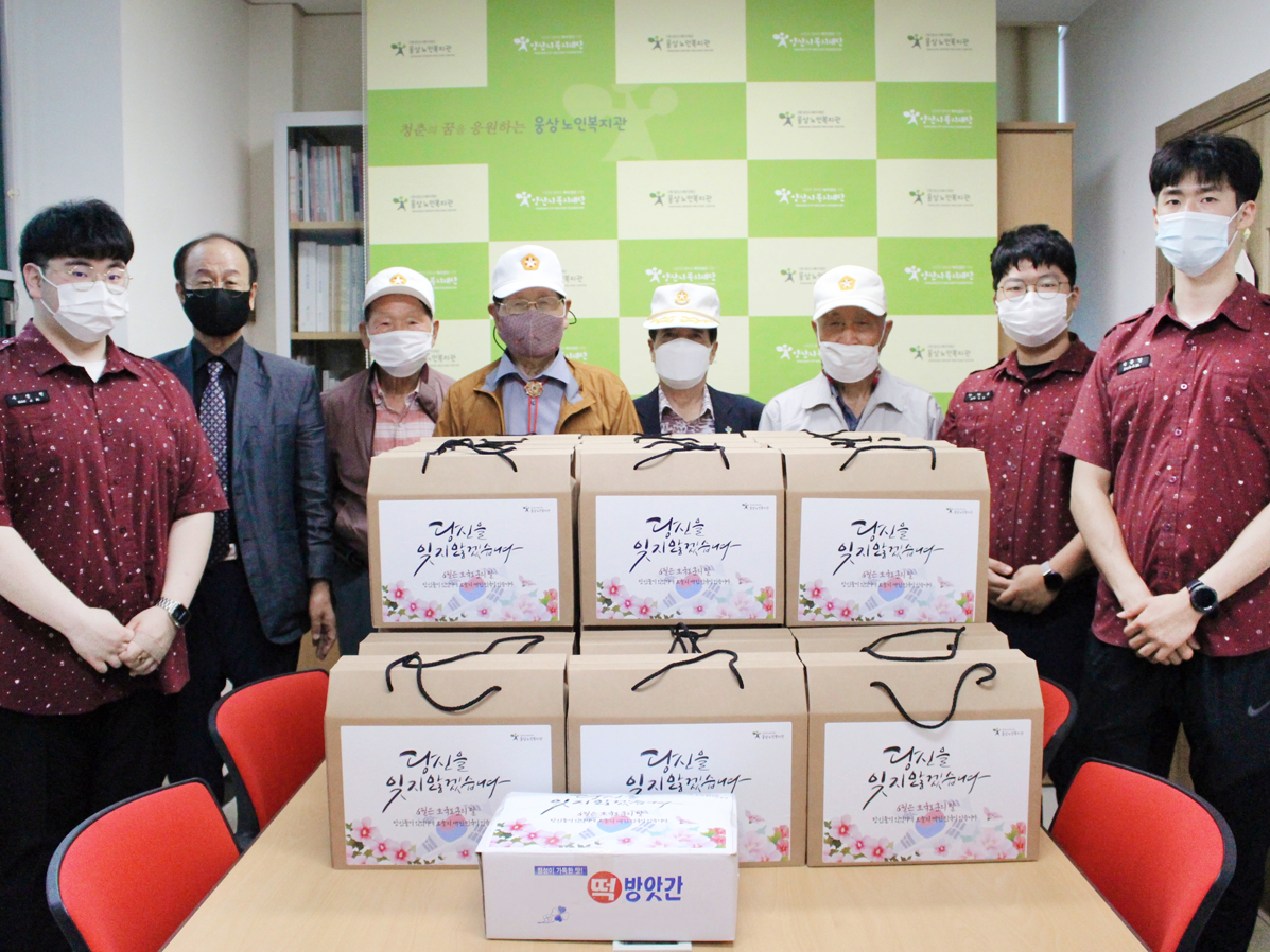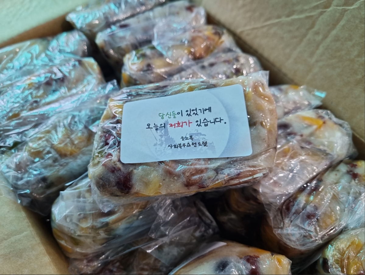 1년 중 1개월이라는 길다면 길고 짧다면 짧은 기간을 지정했는데요. 무서운 일이지만 전쟁이라는 과정이 있었기에 지금 편하게 지 낼 수 있다는 것을 느끼고 감사한 마음을 전하고자는 마음도 있었고 제가 사회복무요원으로 활동하는 동안 많은 것을 베풀어주시기도 했던 참전 용사께 조금이나마 요깃거리라도 하실 수 있는 건강한 떡을 다른 복무요원들과 함께 선물해드렸답니다.