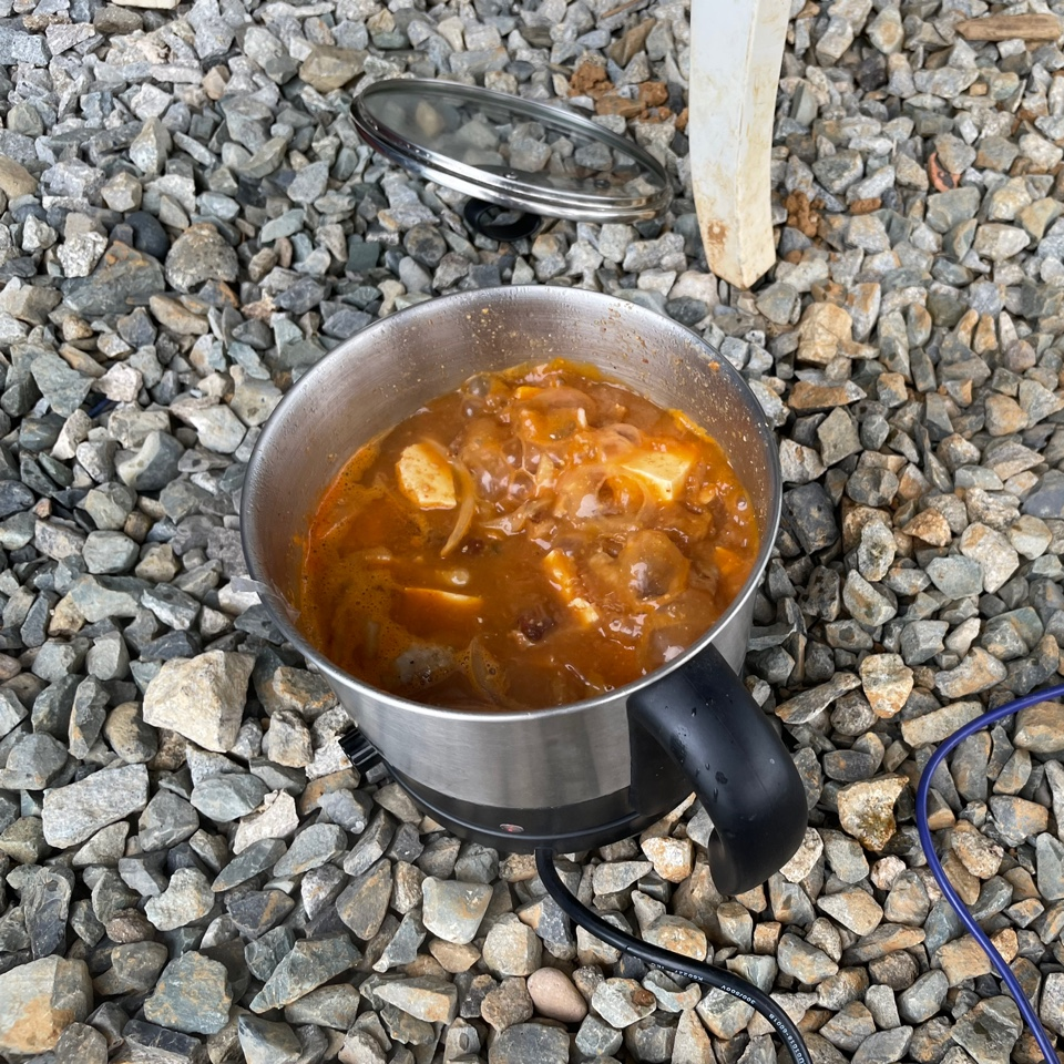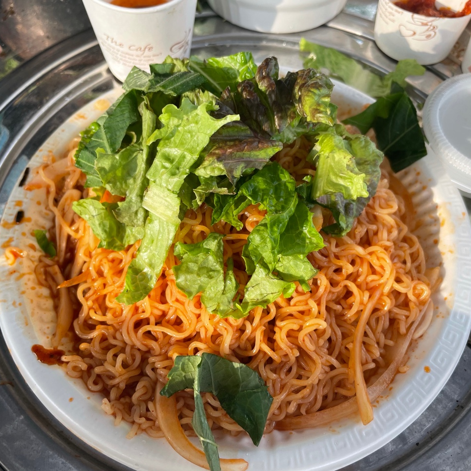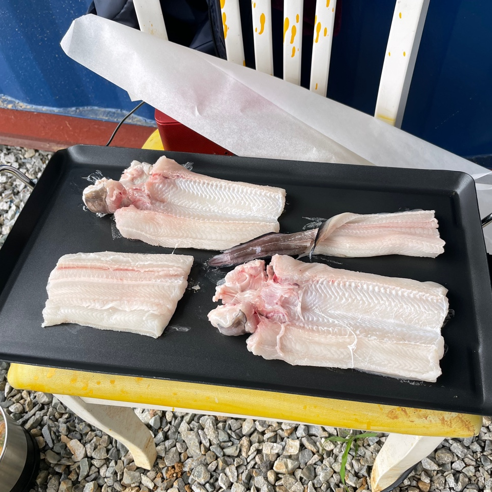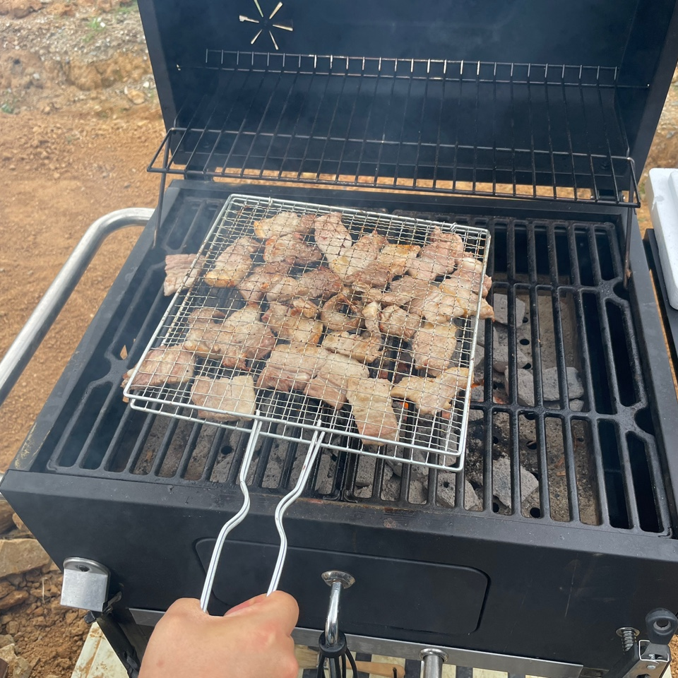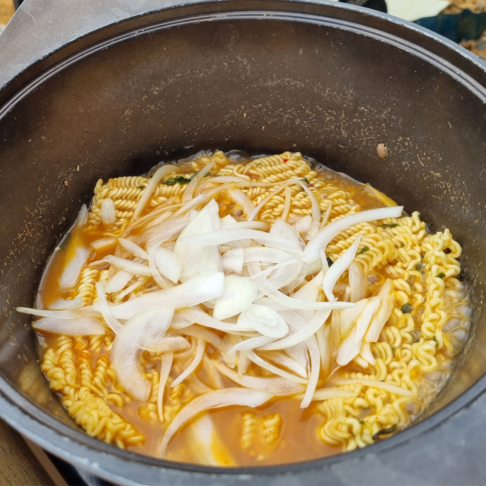 오늘의 메뉴는 숯불직화 삼겹살, 장어구이, 장어 숯불구이, 장어 뼈 구이, 소라, 가리비, 해물라면, 비빔면, 비비고 된장찌개 + GGG, 숯불직화 고구마 등등 엄청난 요리를 즐겼습니다.