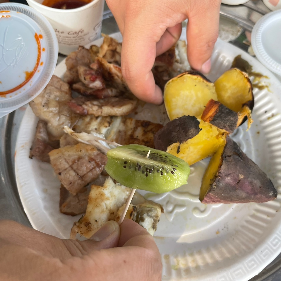 마무리 디저트로는 고구마와 키위!