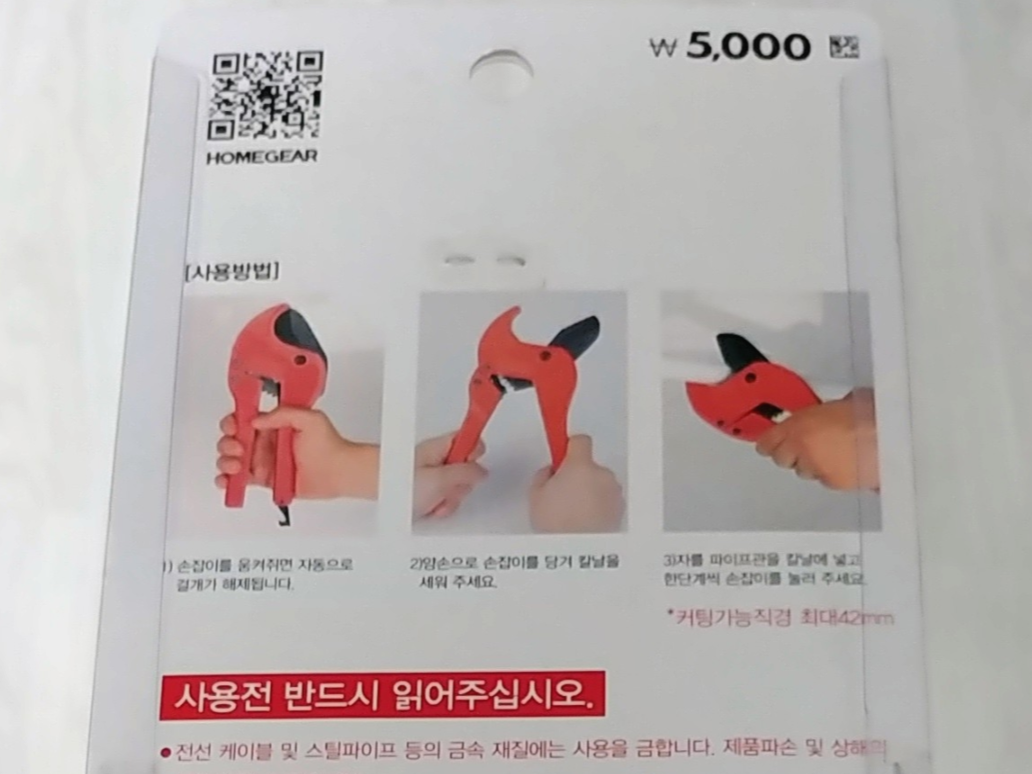 파이프를 자르는 공구가 있는데요 파이프 커터라고 합니다. PVC 파이프 커터는 다이소가 제일 저렴합니다. 42mm까지 절단이 가능해서 웬만한 소규모 파이프는 절단이 가능합니다.