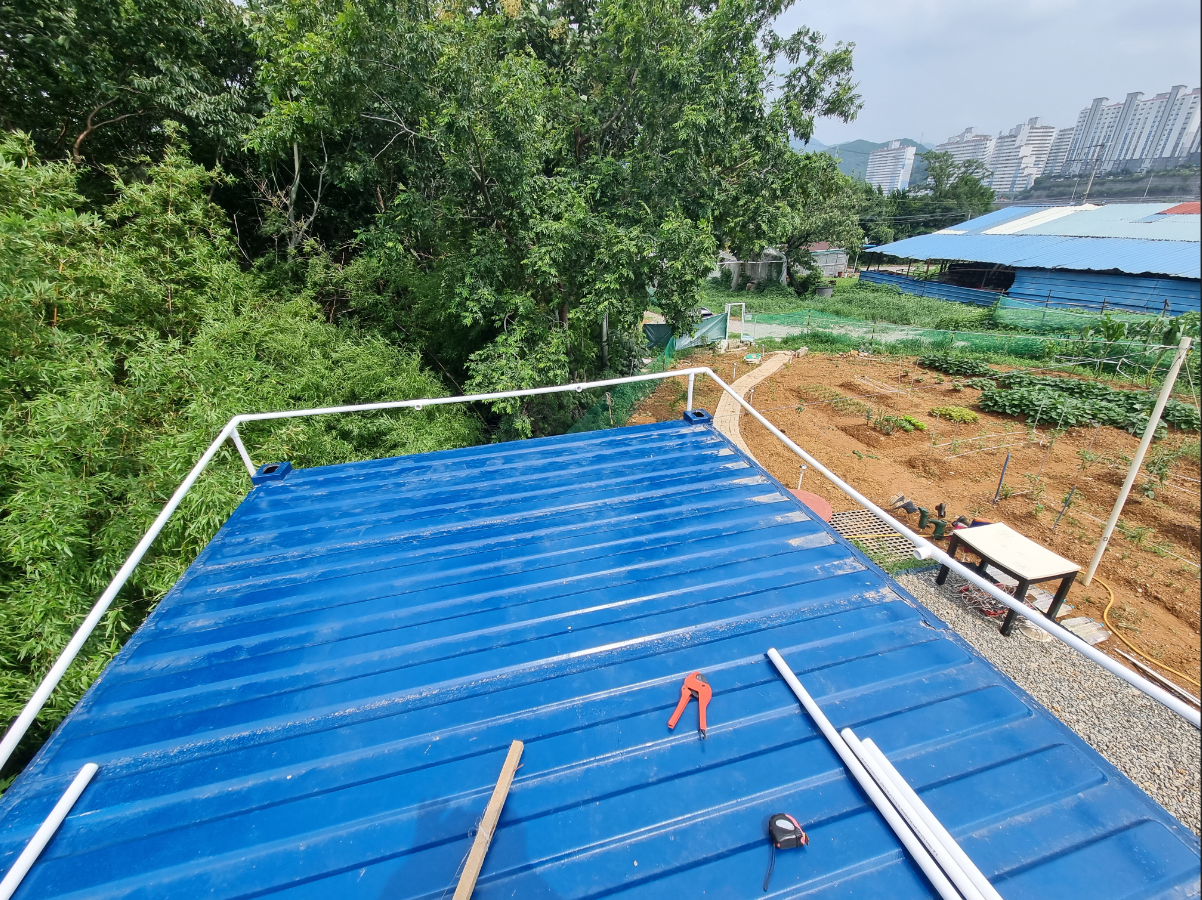 컨테이너 앞으로 타포린 또는 차양막 설치를 위해 준비를 하였는데요...