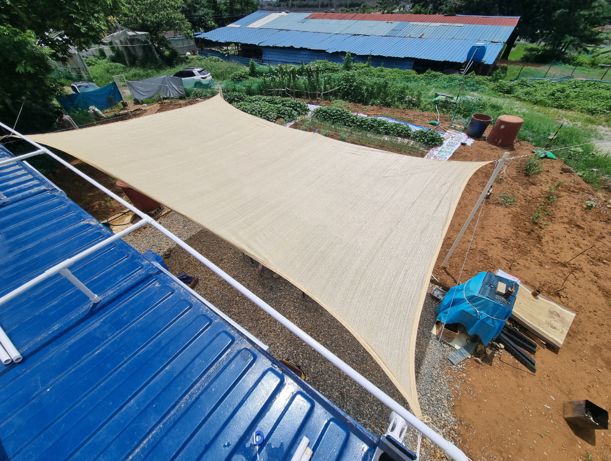 컨테이너 앞으로 타포린 또는 차양막 설치를 위해 준비를 하였는데요...