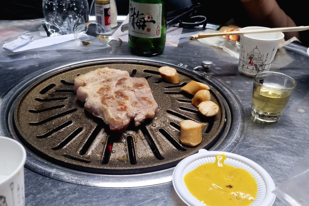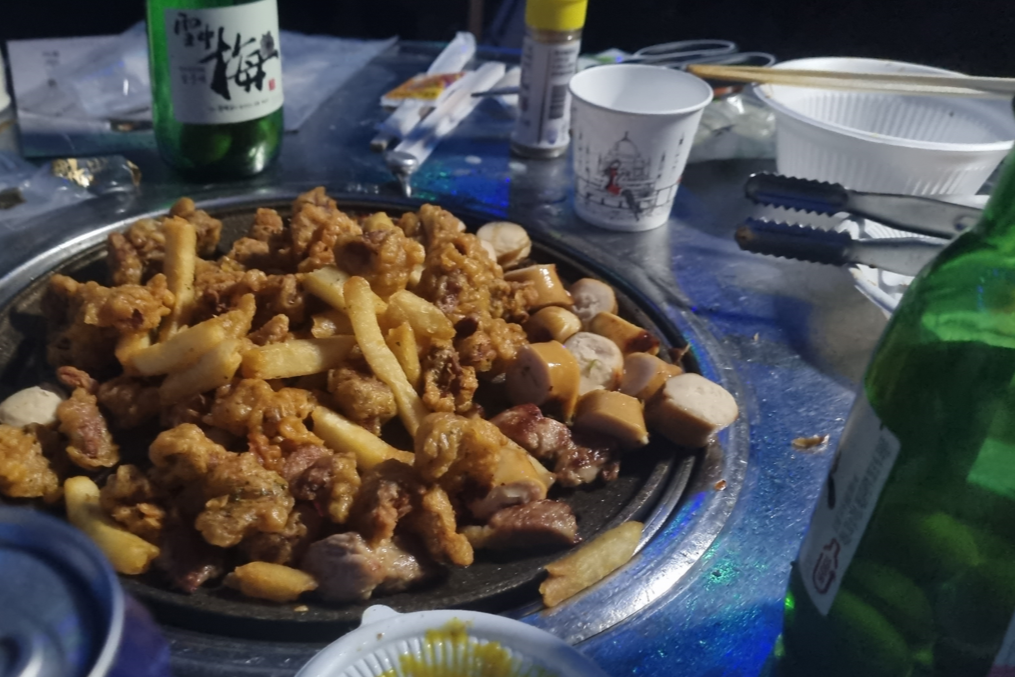새벽까지 먹다보니 후식으로 순살이랑 닭똥집도 시켰는데 식어서 불판 위로 올렸던.... 취하긴 했나 봐요 ㅋㅋㅋㅋ