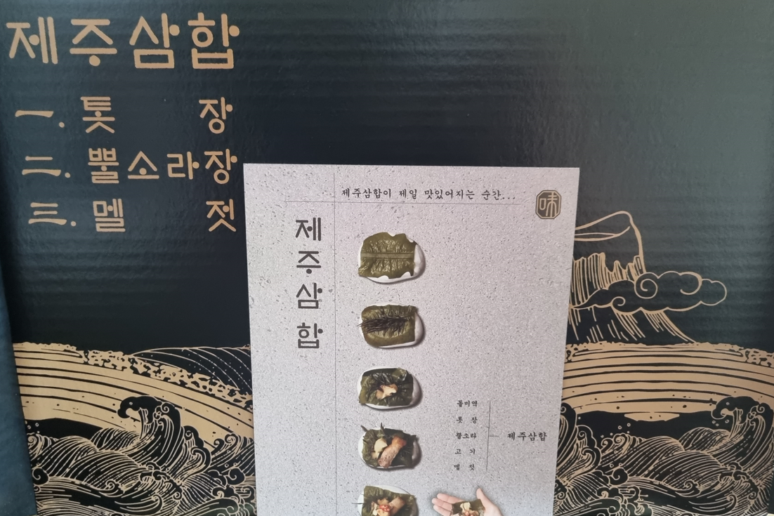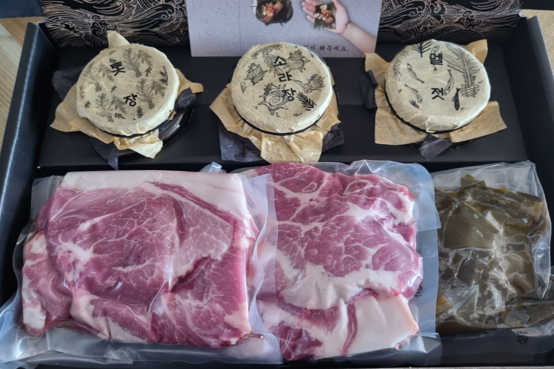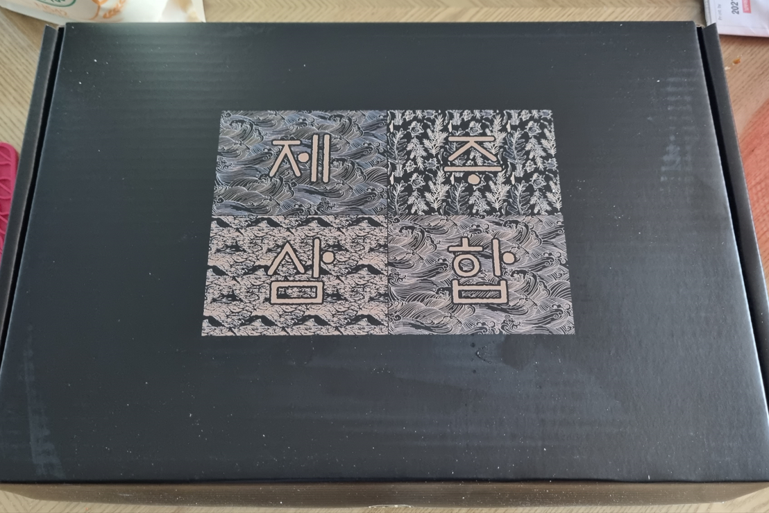 제주 삼합??이라고 적힌 검정 박스가 들어 있네요. 또 신나게 개봉~!