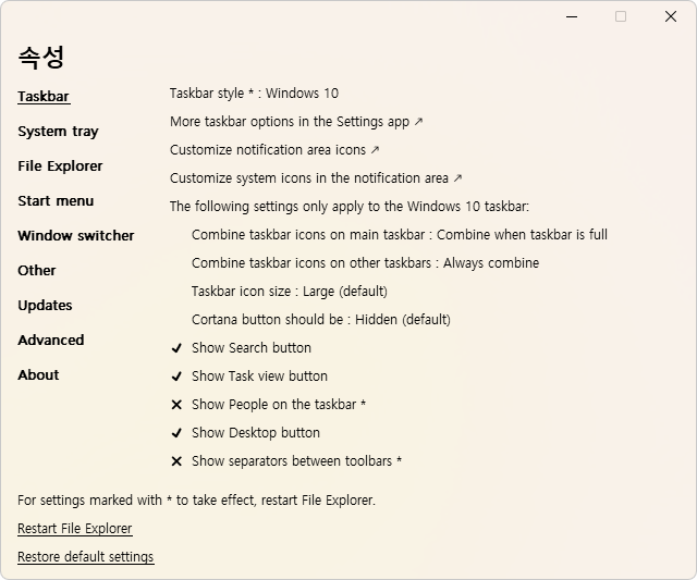 설치 후 먹통이 되는데 잠시 기다리면 Windows 탐색기가새로시작되며 이렇게 바뀝니다.