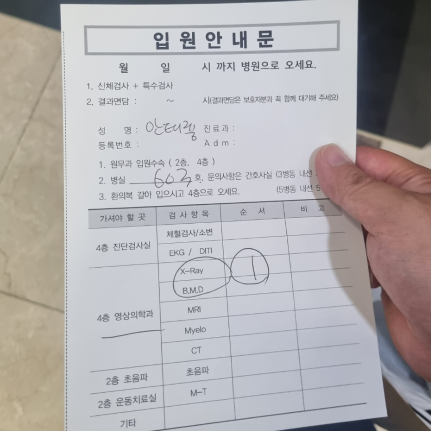 확진 당일 새벽 설사가 좀 심하고 기침이 심해서 아침 일찍 병원에 들러 신속항원 검사를 하였습니다... 생각하지도 못한 확진 판전에 당황했지만 감염병 보고체계에 따라.... 보고부터 하고 통지서가 나오자마자 서류를 보내고... 저는 1인 가구라 혼자 케어하기에 벅차다 판단되어 근처 병원에 자율 입원하겠다는 마음으로 알아보고 근처 병원에 바로 입원하였습니다.