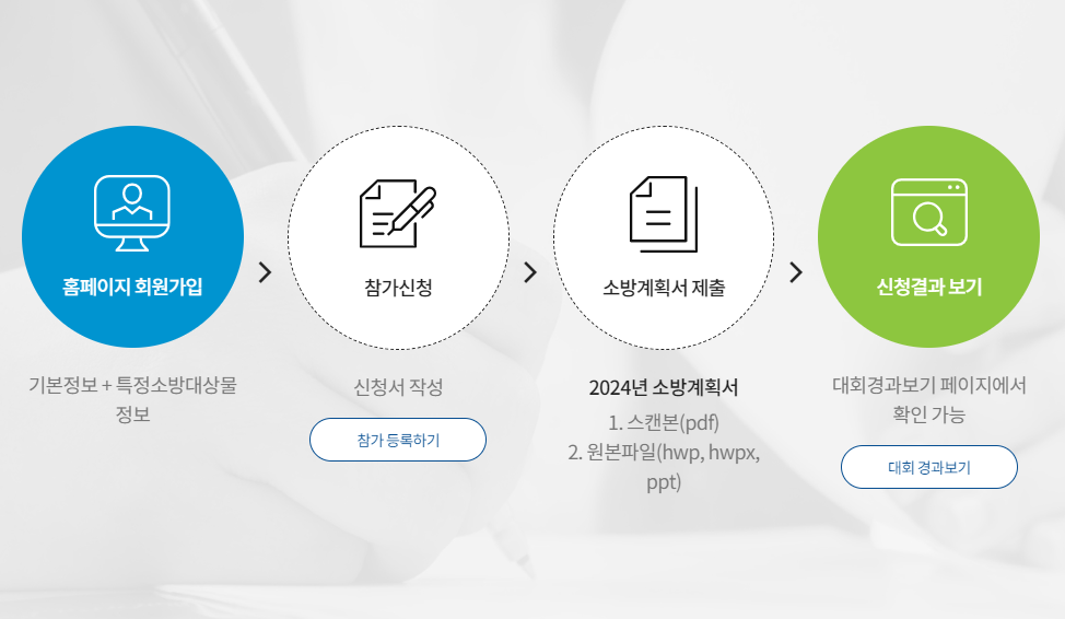 사실 소방안전관리자 보수교육을 듣기 위해 소방안전원 누리집에 들어갔다가 우연히 알게 되었고 공모도 비교적 간단히 소방안전계획서, 소방안전관리와 관련된 활동 내역을 붙여 대회참가가 가능했다는 점이었습니다.