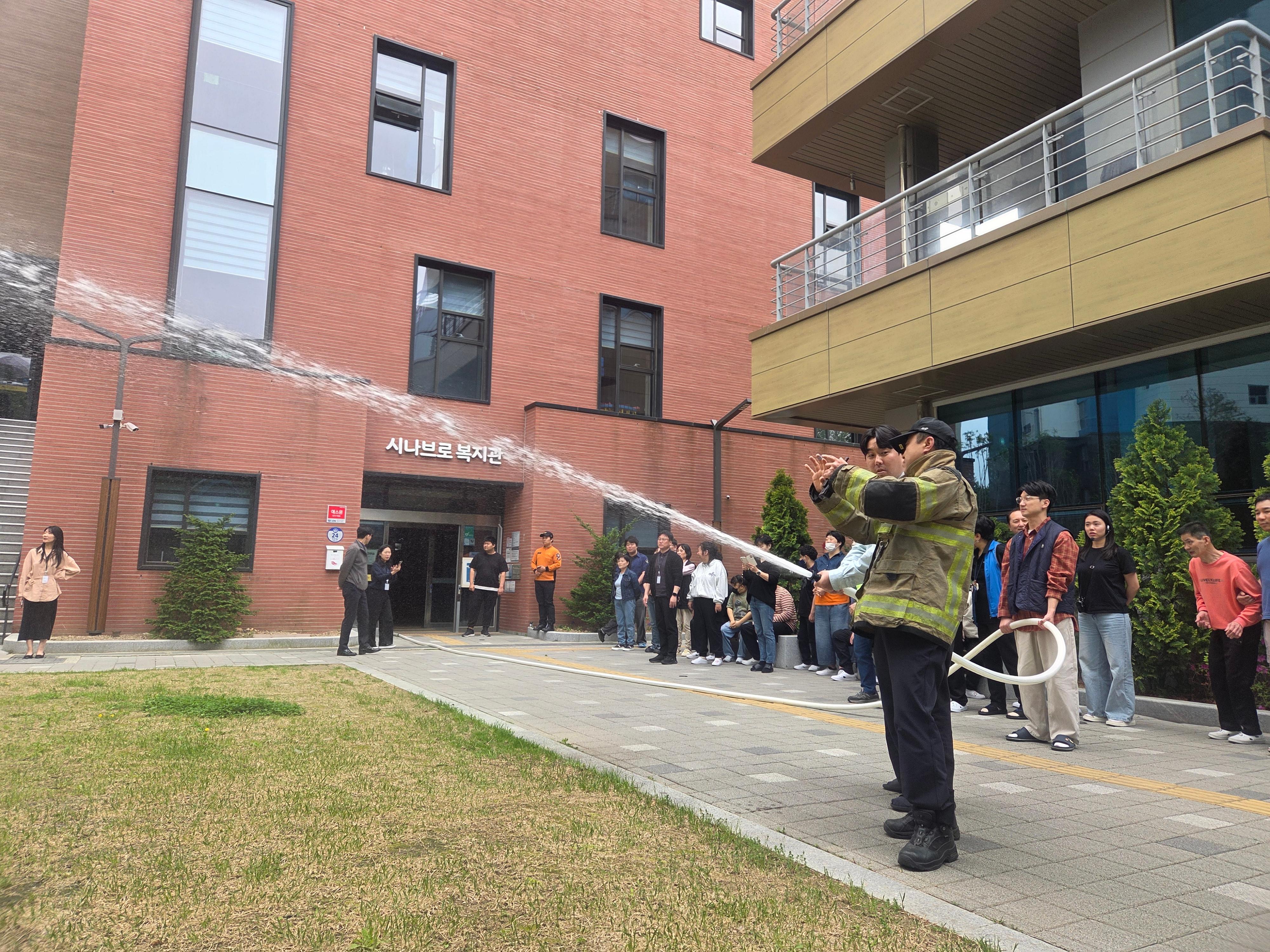 훈련 이후에는 소화기 및 옥내소화전 사용법을 직접 체험해보는 시간도 마련되었습니다.