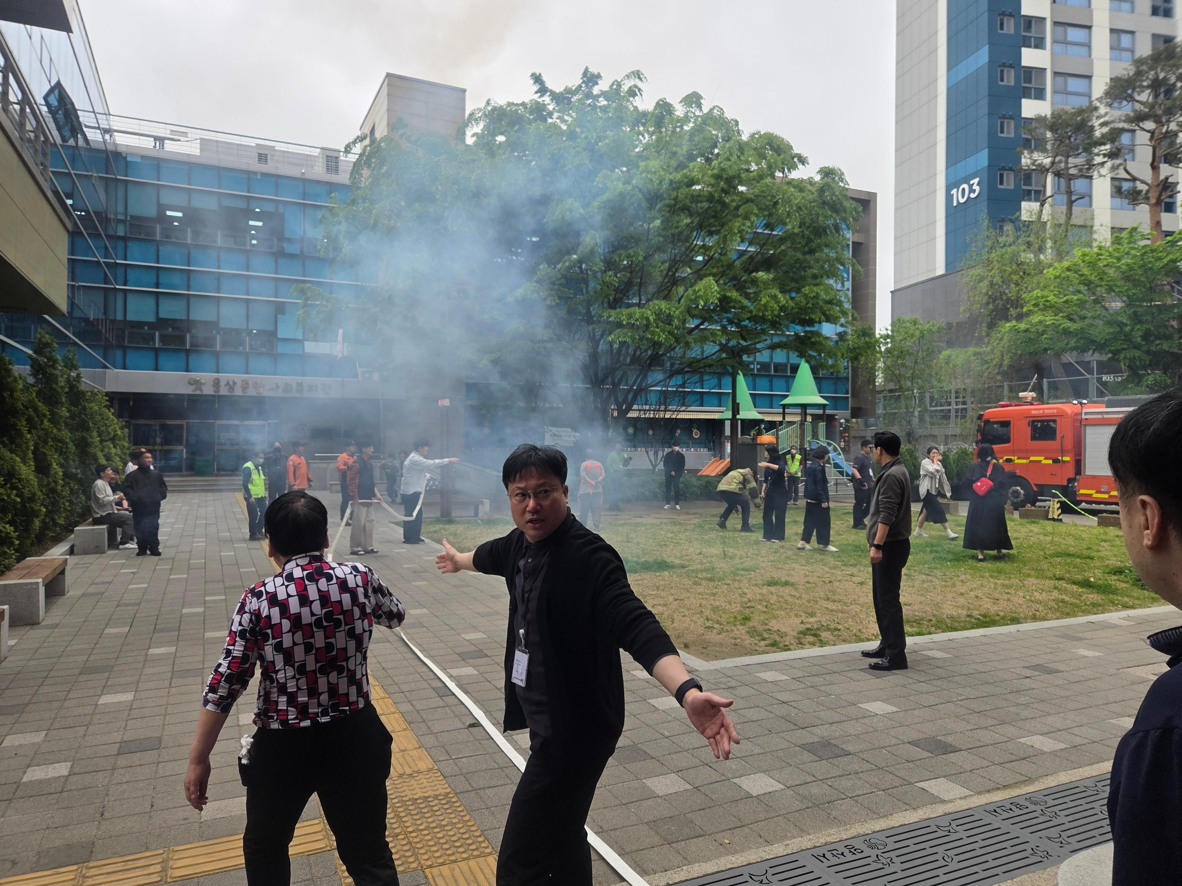 직원들은 이용자와 내방객의 안전을 위해 신속하게 대피를 유도하며 질서 있게 이동할 수 있도록 도왔습니다.