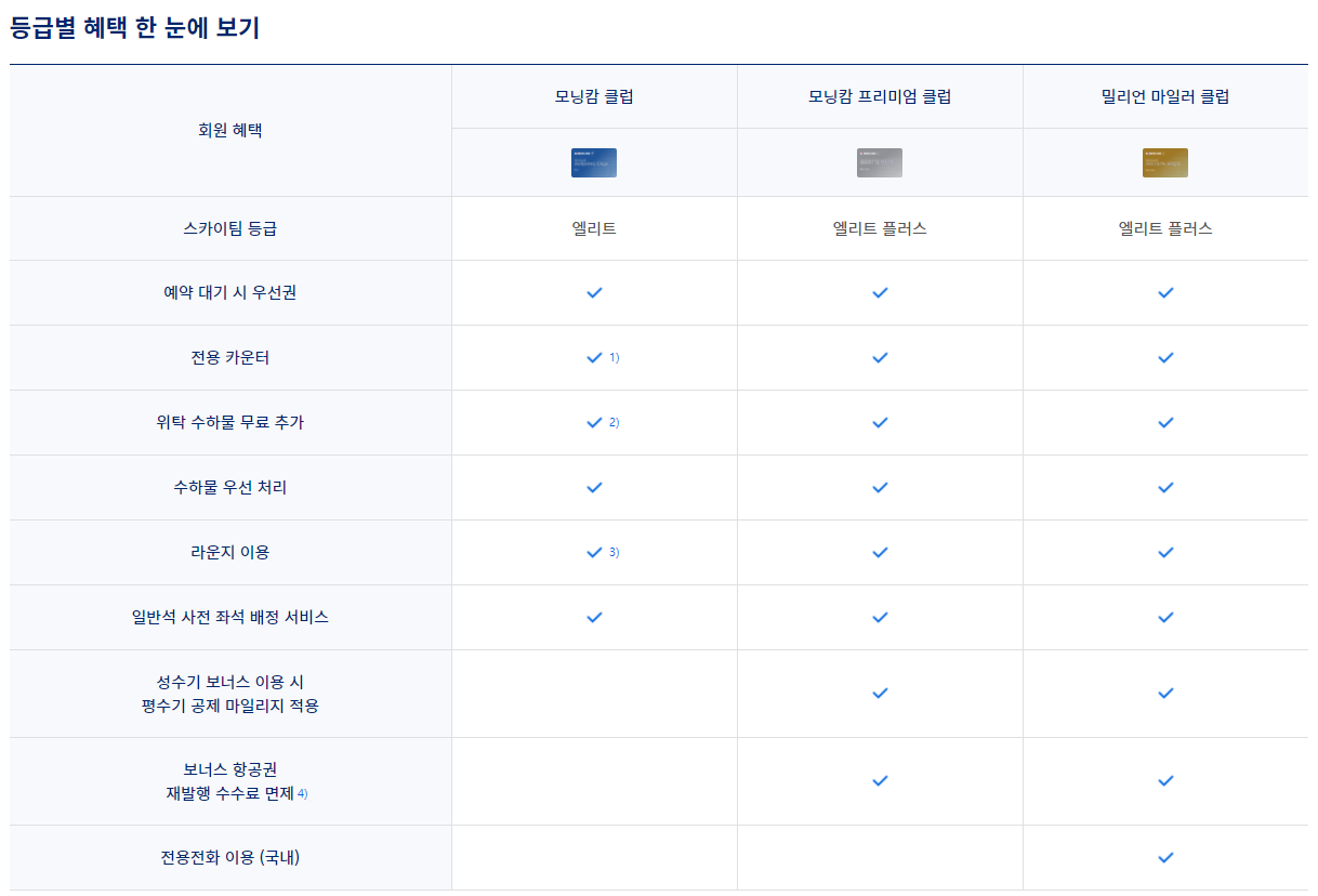 위와 같이 스카이 패스 회원 등급별 혜택이 주어지는데요!