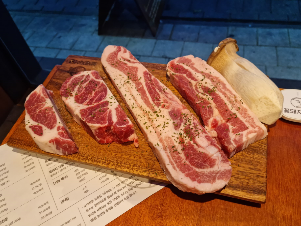 꽃 목살의 경우 핏기가 가시면 바로 먹으라고 직원분이 친절하게 설명해주셨어요!