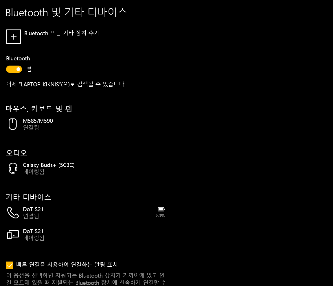 그러 고난 뒤 노트북이나 폰, 태블릿에서 디바이스 추가를 눌러줍니다.