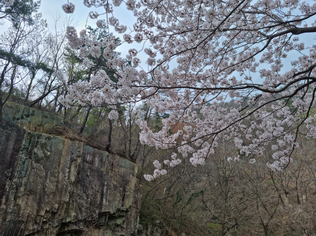 벚꽃길 입구 그리고 절벽 앞에서!
