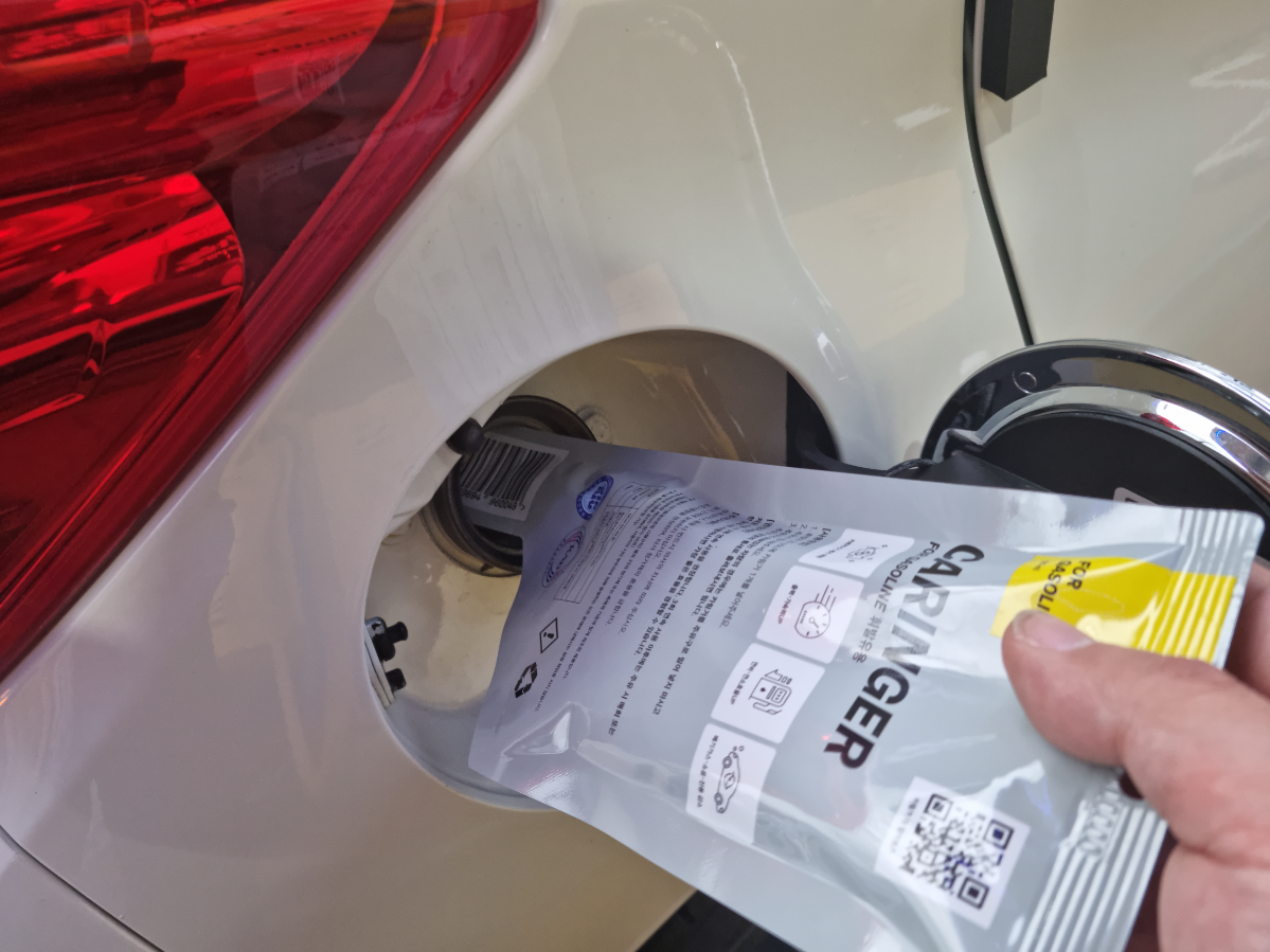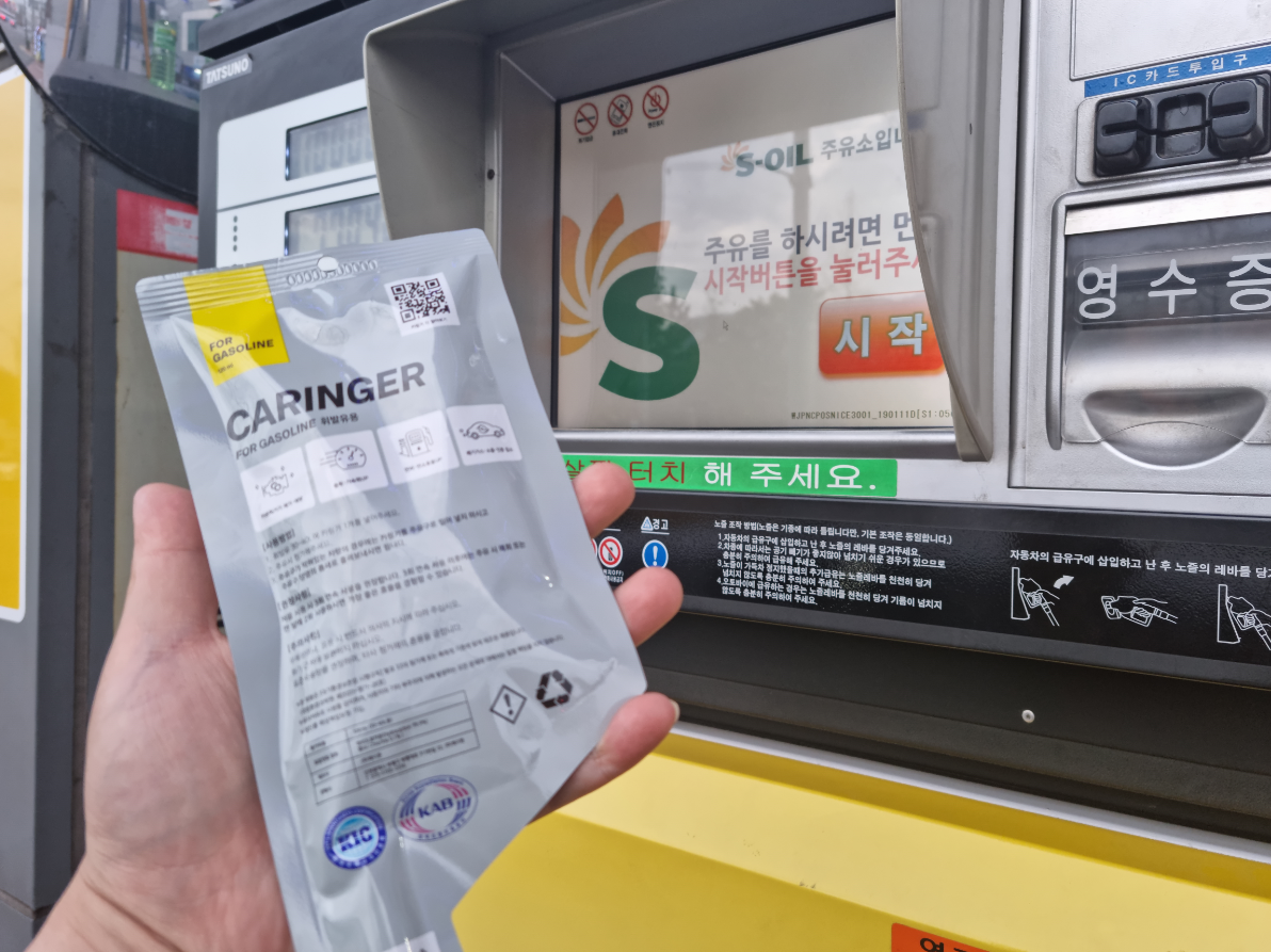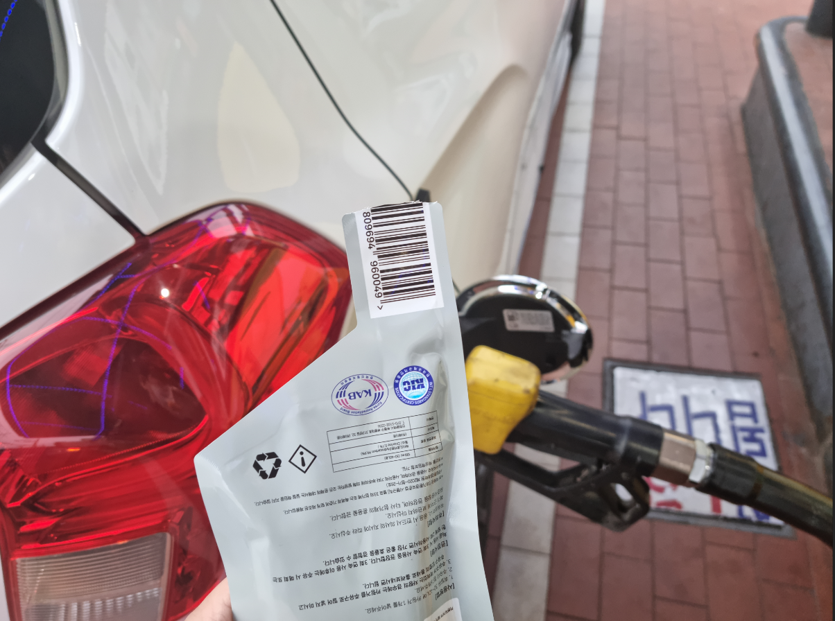 주유가 끝나면 파우치를 뜯고 준비합니다.