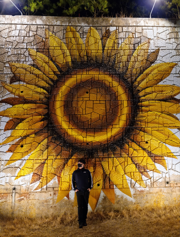 그러고 나서 해바라기를 등지고 한컷 찍어봅니다.