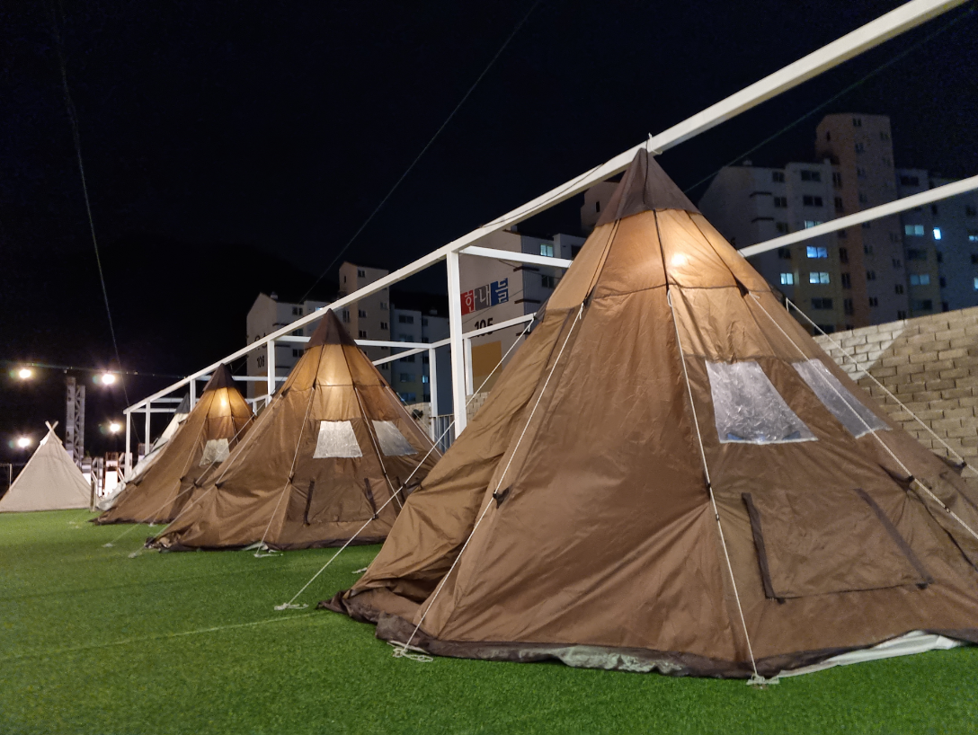 그러고 야외에는 캠핑존이 있는데요.