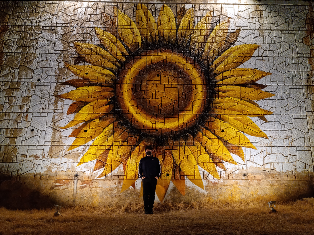 그러고 나서 해바라기를 등지고 한컷 찍어봅니다.