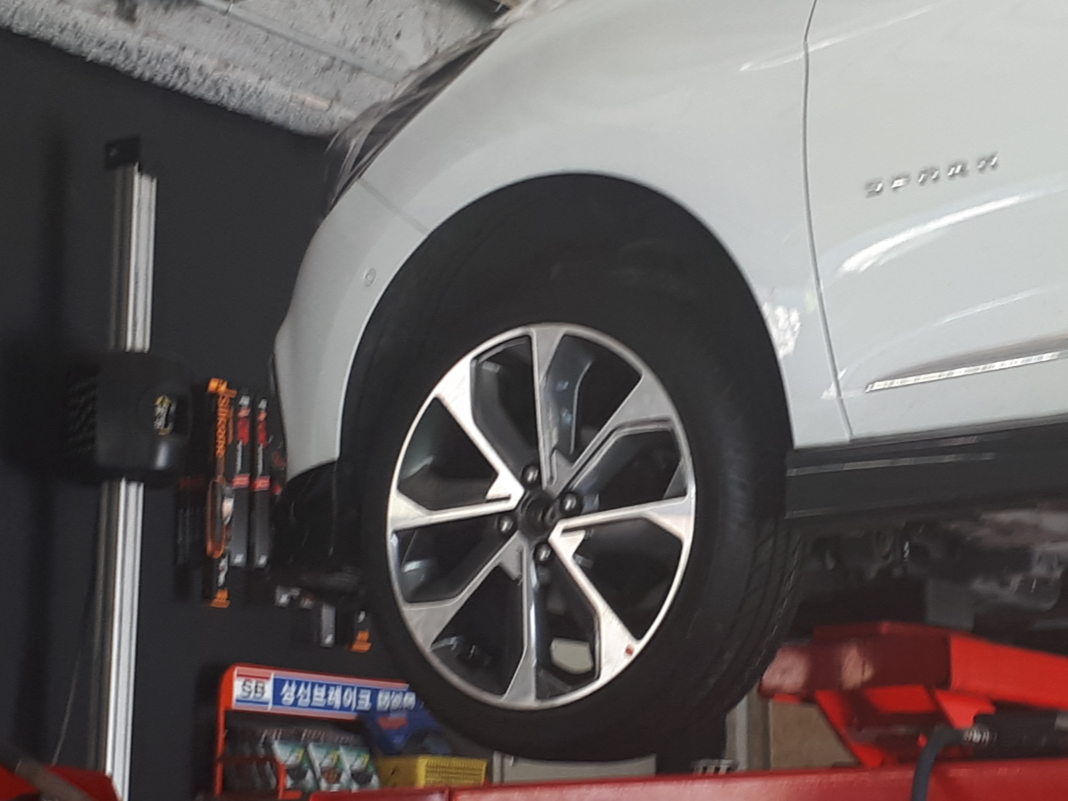 기존 휠에서 TPMS 센서만 탈거하고 기존 휠을 장착한 후 다시 집으로 돌아갔었답니다.