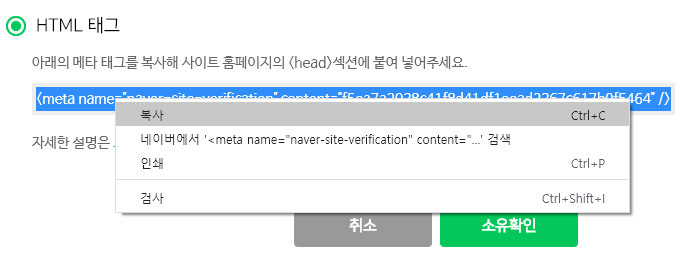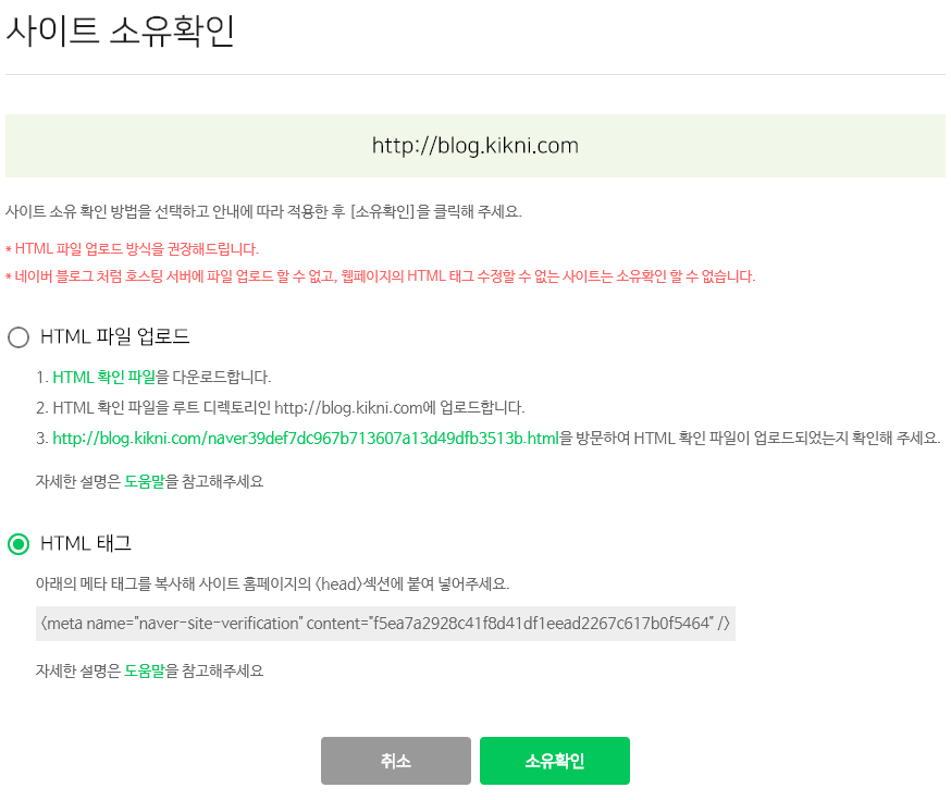 4. 사이트의 주인임을 증명해야겠죠?? 소유확인을 위한 절차를 진행해주셔야 합니다!