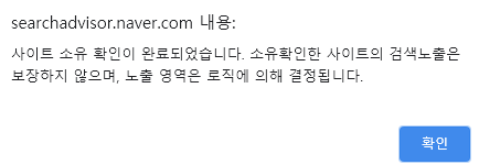 이러면 이제 웹마스터 등록은 끝이 났습니다.