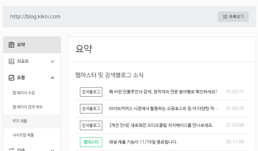 그러면 요청> RSS 제출 버튼을 눌러주세요.