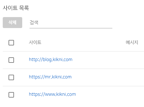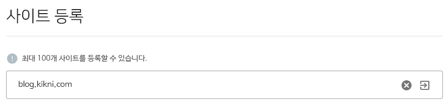 3. 연동 사이트 목록 아래 사이트 추가에 본인 티스토리 주소 또는 블로그 주소를 넣어서 추가 버튼(->)을 클릭해주세요.