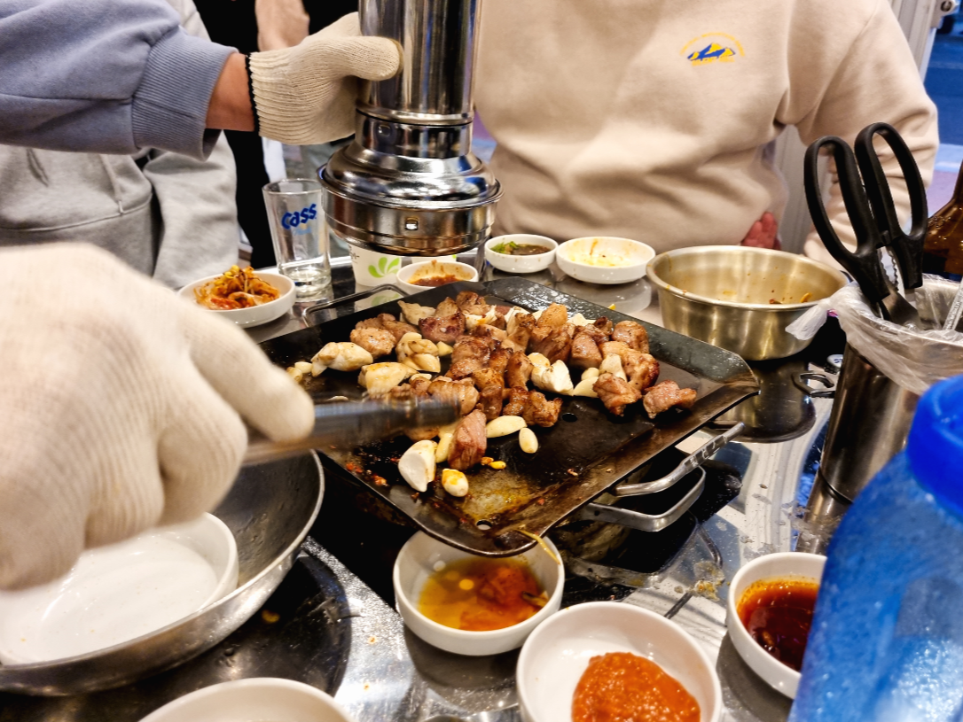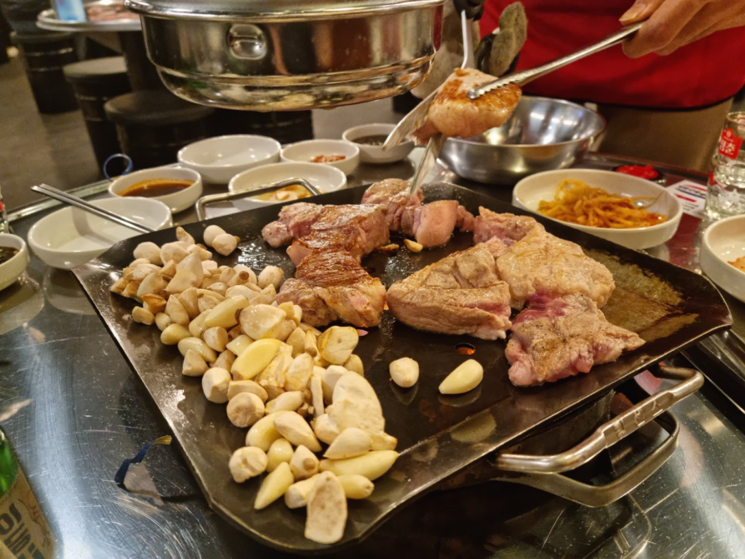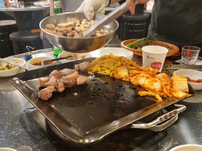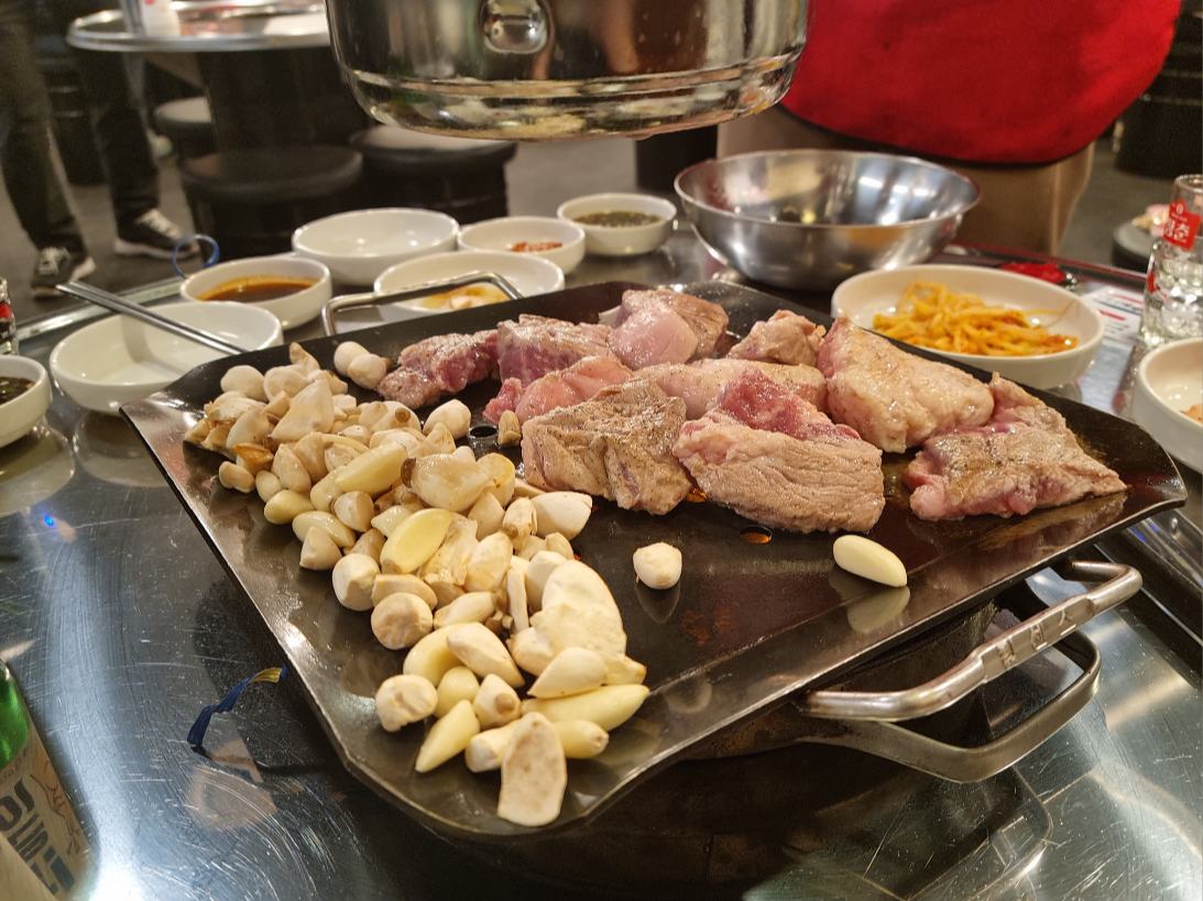 아르바이트생분이 구워주셨는데.... 고기가 잘 안 잘리는 거예요... 낑낑대시다가 뒤에서 사장님 포스 나시는 분께서 아이고 제가 구워드릴게요! 하셔서 체인지!!!! 금방 슥슥 구워주셨답니다.