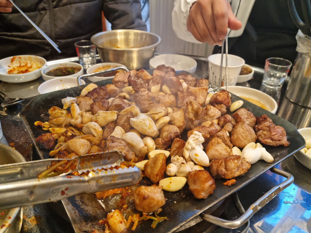 아르바이트생분이 구워주셨는데.... 고기가 잘 안 잘리는 거예요... 낑낑대시다가 뒤에서 사장님 포스 나시는 분께서 아이고 제가 구워드릴게요! 하셔서 체인지!!!! 금방 슥슥 구워주셨답니다.