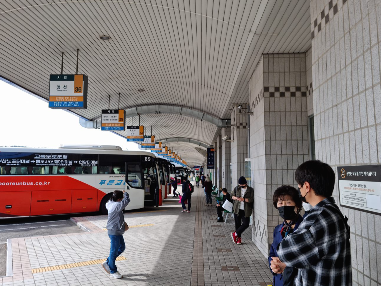 플랫폼에 들어서니 생각보다 많은 인파가 버스들을 기다리고 있었어요.