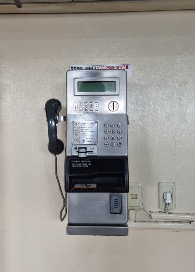 버스 타기 전 화장실을 들리기 위해 화장실 앞으로 가니 공중전화가 벽에 붙어있네요!