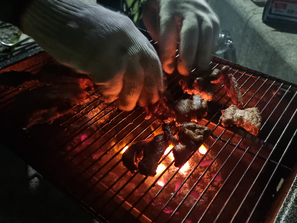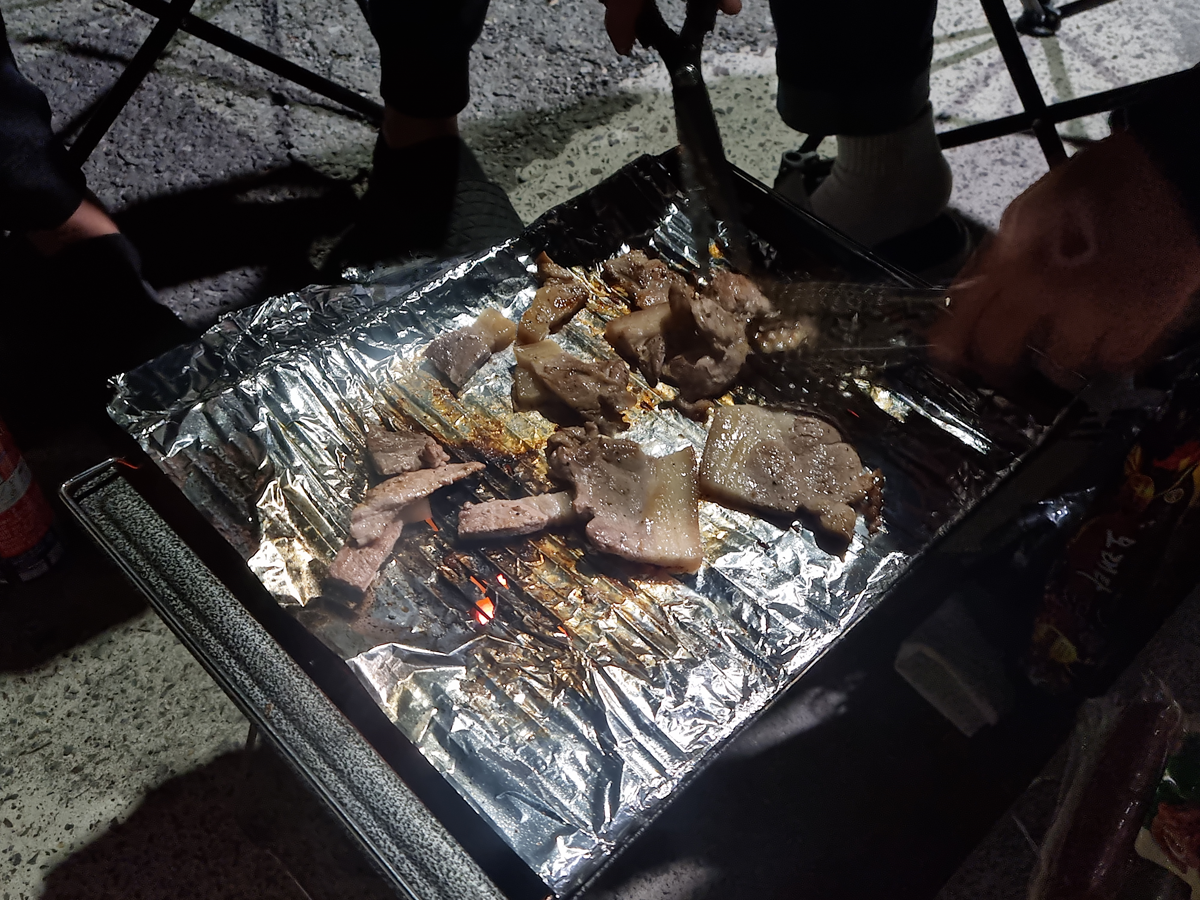 숯불을 안 챙겨서 구공탄을 급히 공수해 고기 먹었는데... 맛이 작살났어요!