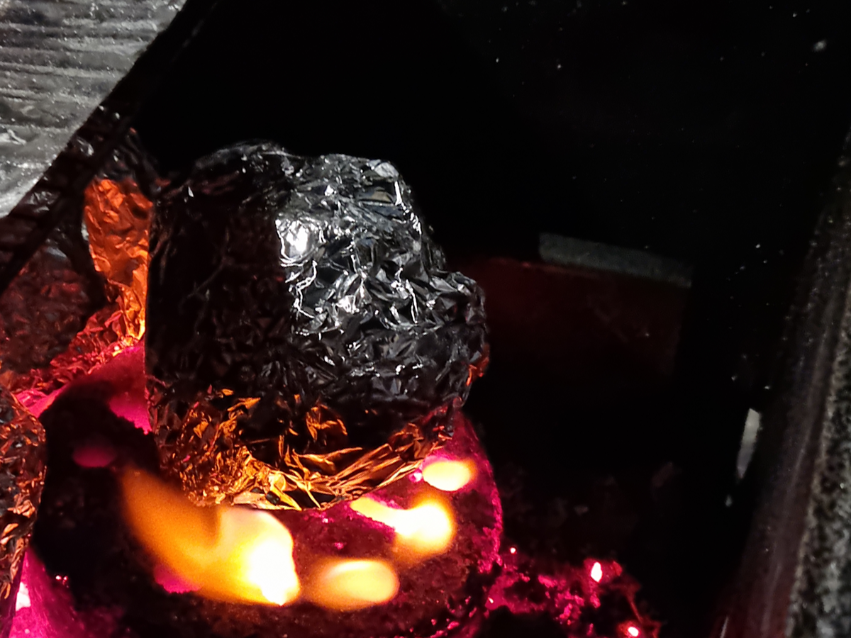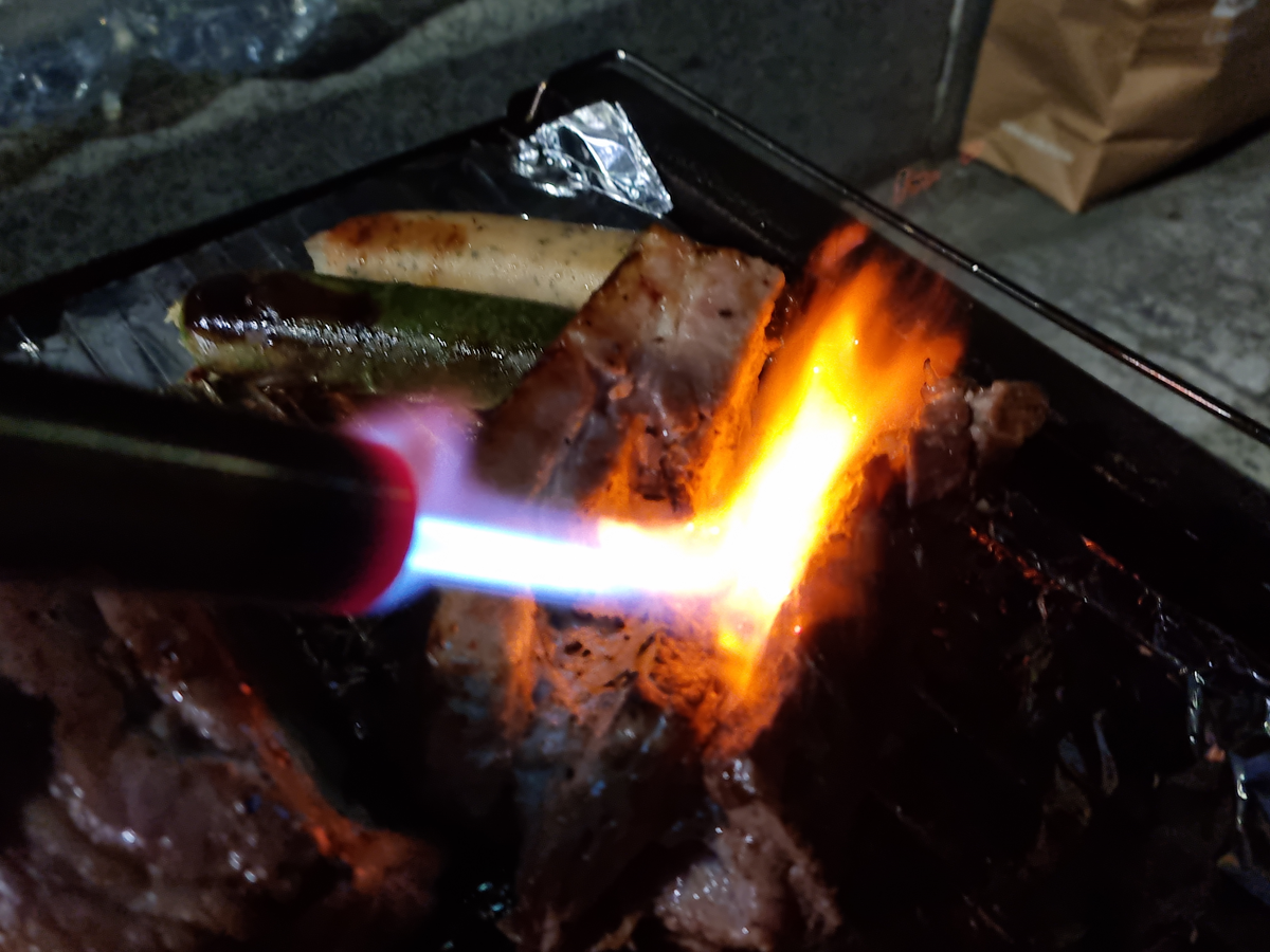 고깃덩이를 포일에 싸서 또 구워보니 불향이 가득! 더 맛있었어요.