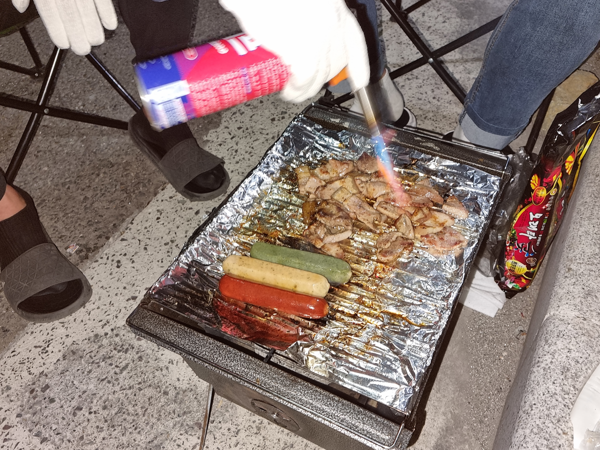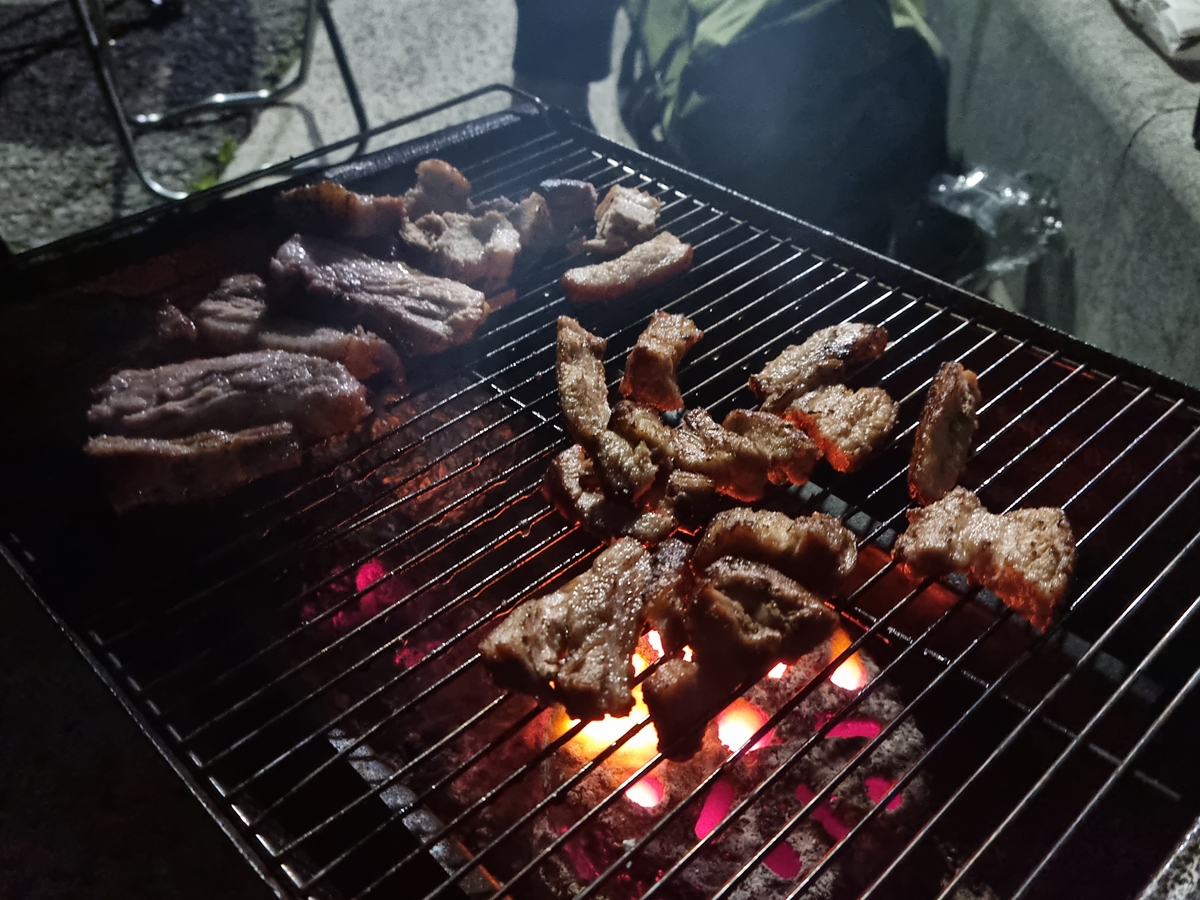 숯불을 안 챙겨서 구공탄을 급히 공수해 고기 먹었는데... 맛이 작살났어요!