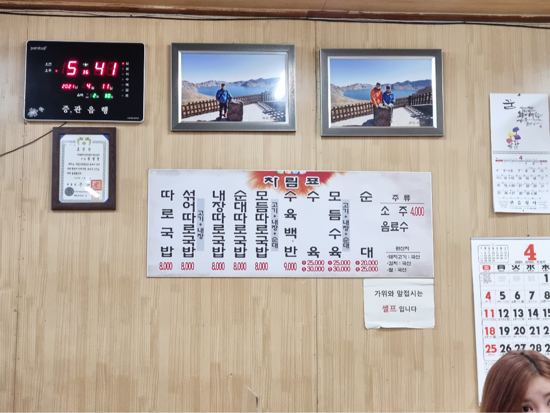 다 따로국밥이고 수백, 수육, 모둠 수육, 순대 그리고 음료가 전부예요.