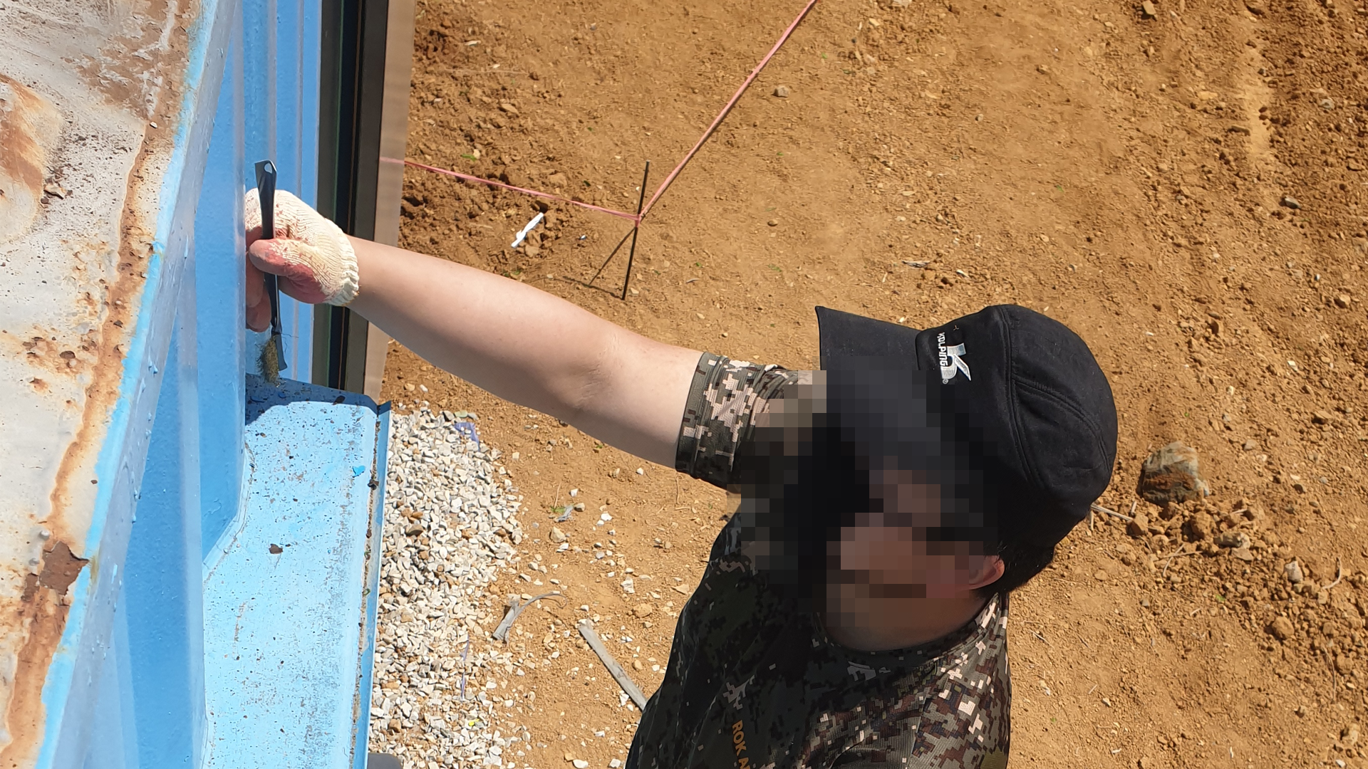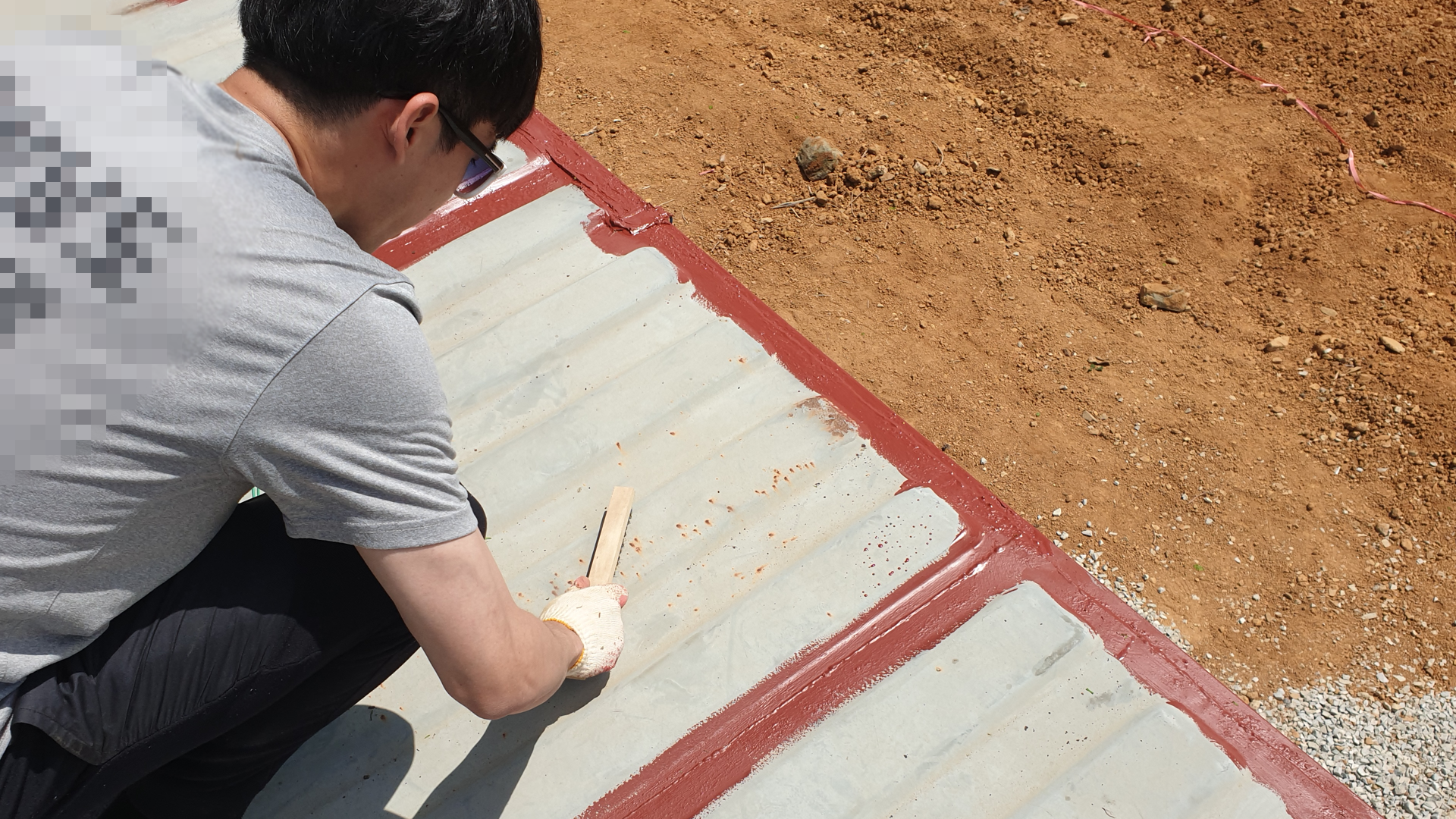 컨테이너 농막을 오래 사용하기 위해 색칠하기 전에 녹부터 제거해보았습니다. 녹을 제거한 후 제거한 부위에는 모두 사비를 발라주었습니다.