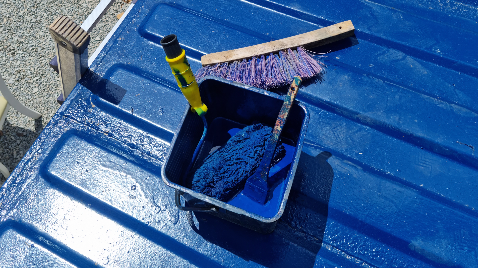 페인트 집에서 18L (청색) 2L (황색) 18L(희석제) 그리고 붓과 롤러, 롤러대를 구입하였습니다. 그 외에 철 브러시와 사비로 불리는 방청도료도 구매하였습니다.