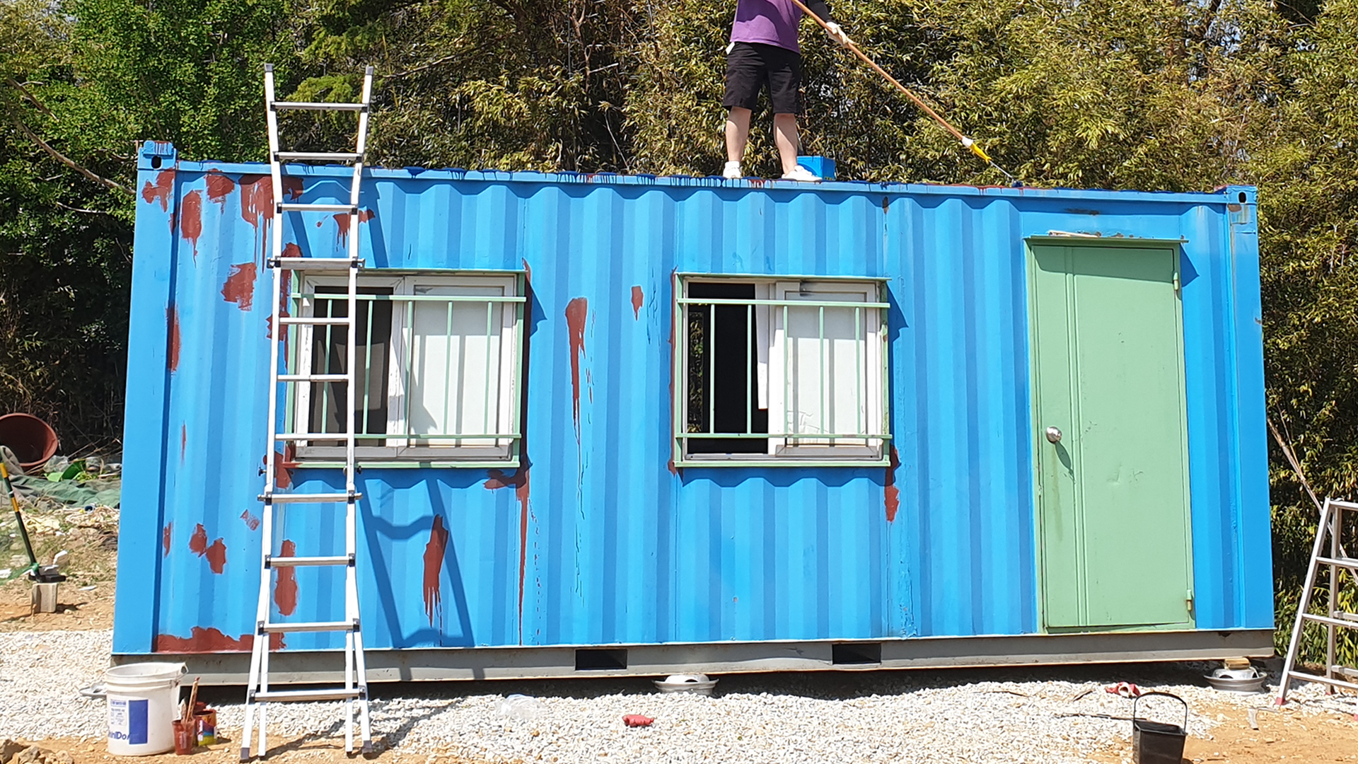 오늘은 세 번째 포스팅으로 컨테이너에 녹을 제거하고, 색깔을 입혀보도록 하겠습니다!