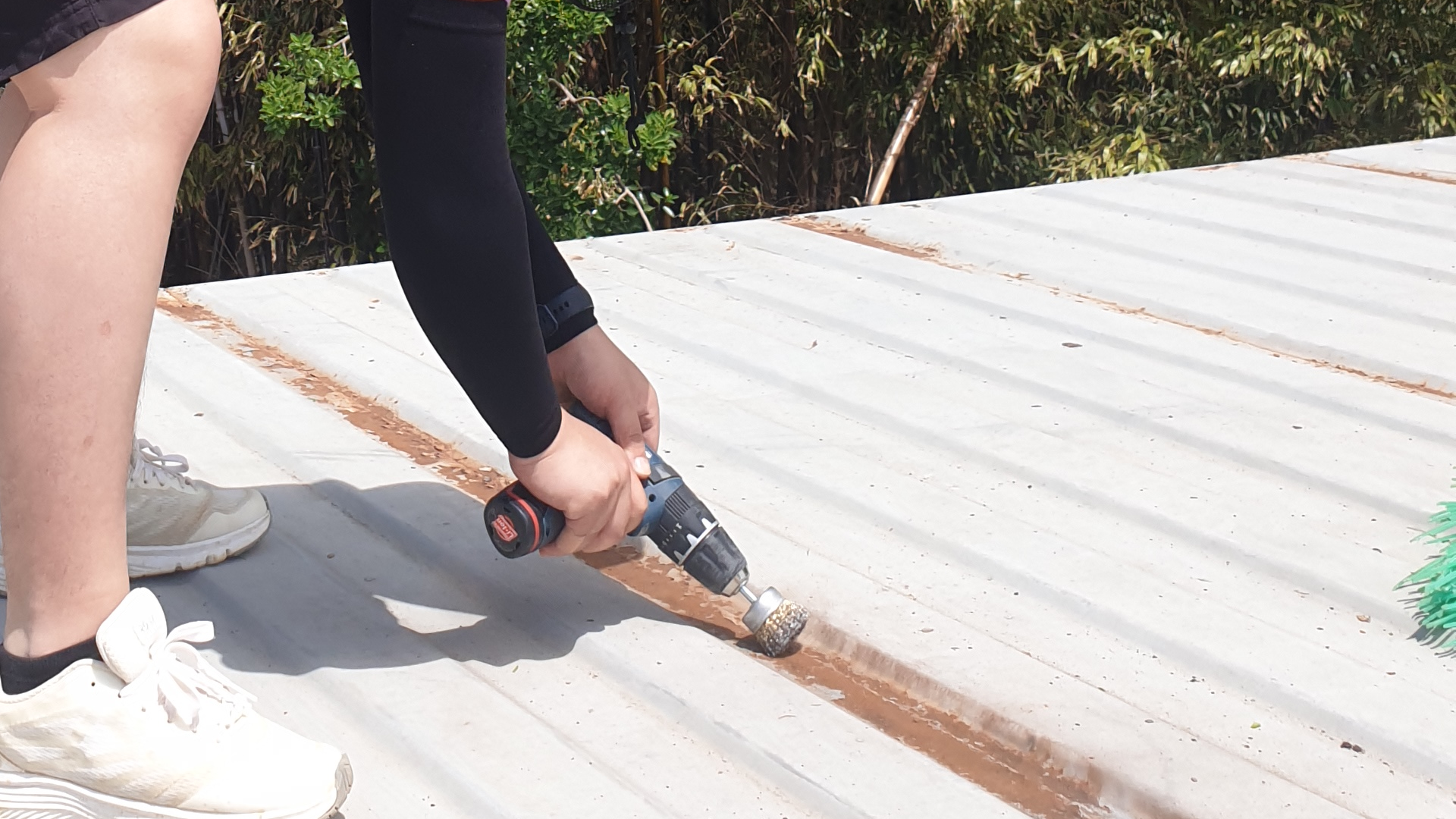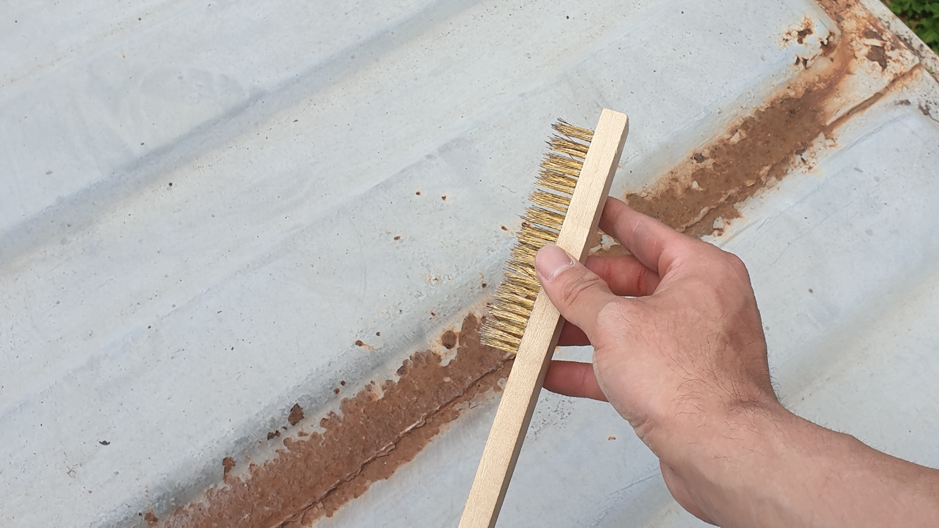 컨테이너 농막을 오래 사용하기 위해 색칠하기 전에 녹부터 제거해보았습니다. 녹을 제거한 후 제거한 부위에는 모두 사비를 발라주었습니다.